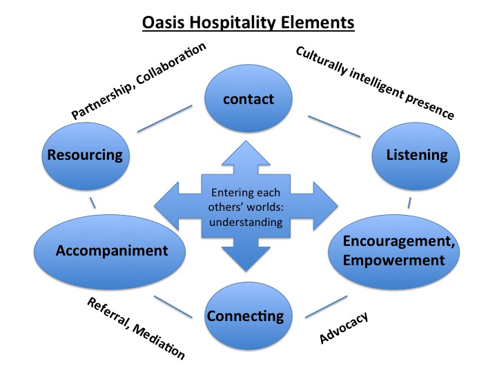 Beatrice Panne, lecturer in Pastoral Care at the Uniting College, has suggested adding a piece to our Elements of Hospitality schema – ‘entering each others’ worlds: understanding‘ – thanks Beatrice!