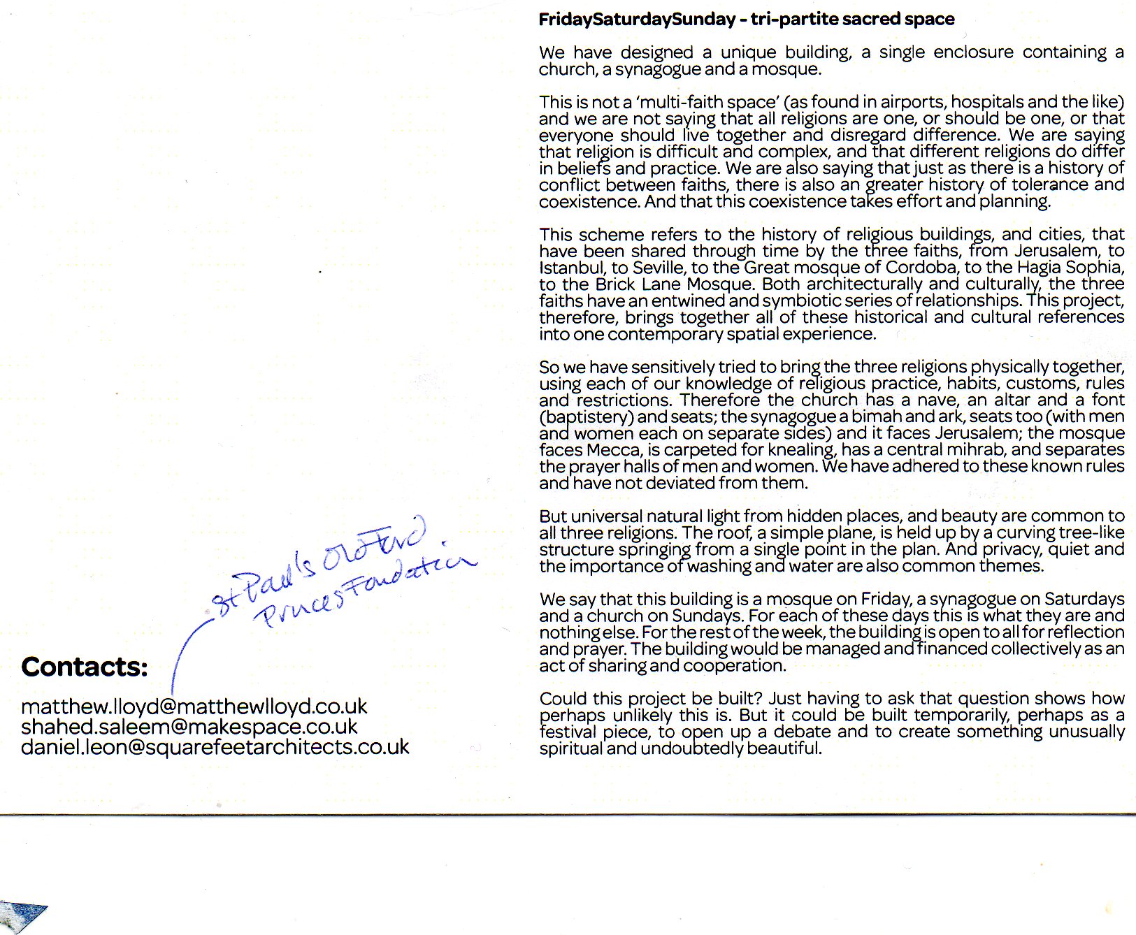 The Faith Friendly Charter, for example, is a resource that emerged from Oasis and reflects its values; and Oasis team members may be called upon to assist others who want to implement it.